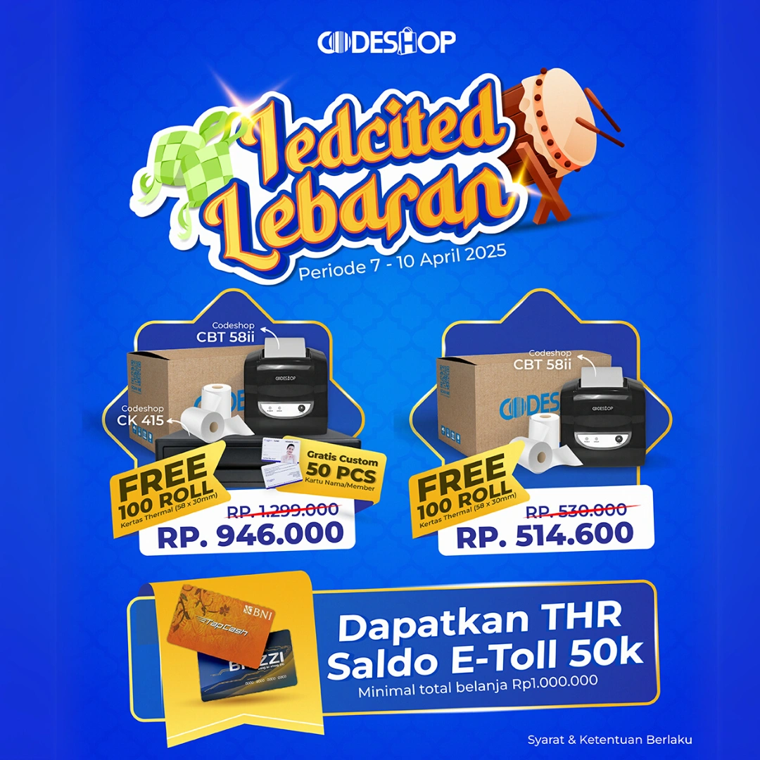 Kabar gembira untuk warga Surabaya! Kini Anda bisa belanja perlengkapan kasir, printer struk, barcode scanner, hingga kartu PVC lebih mudah dan cepat hanya di Codeshop Surabaya Timur.