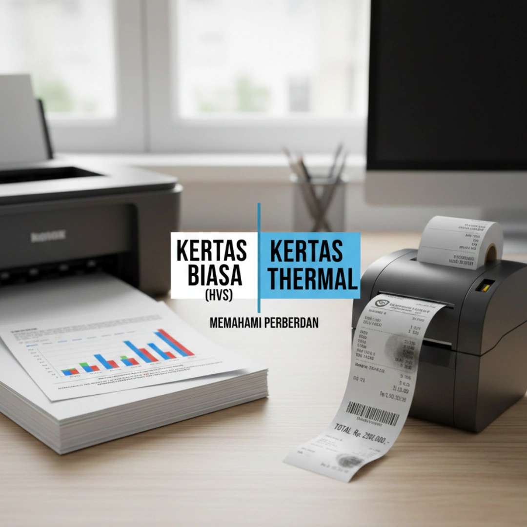 Pilih Kertas Thermal jika: Anda membutuhkan pencetakan cepat, senyap, efisien biaya operasional (tanpa tinta), dan sering mencetak struk, label, atau tiket. Ideal untuk lingkungan ritel, logistik, atau layanan pelanggan yang padat.