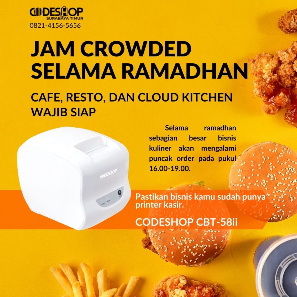 Codeshop – Hi Sobat Bisnis Codeshop. Menjelang bulan ramdhan, sudah mulai terlihat banyak selaki promo, iklan dan program khusus ramdhan yang bertebaran di sekitar kita. Membahas tentang ramadhan tentu tak lepas lengkap jika tak membahas kuliner. Namun pada kesempatan kali ini Codeshop akan mengulas mengenai printer kasir pada bisnis kuliner, lebih tepatnya mengenai tips printer kasir tunjang omzet cloud kitchen selama ramadhan.