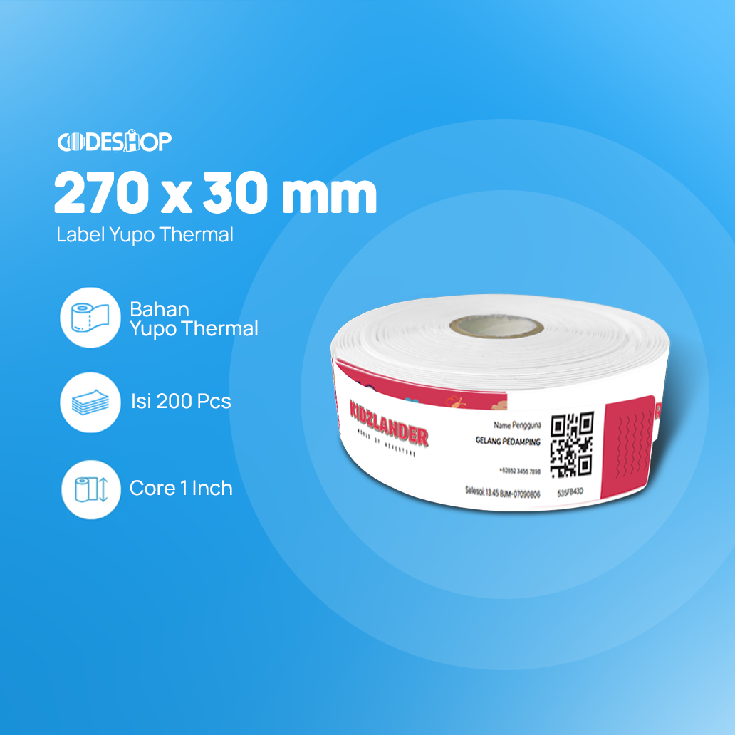Custom Label Yupo Thermal 275 x 26 mm 1 Line Blackmark Full Color Isi 100 Pcs