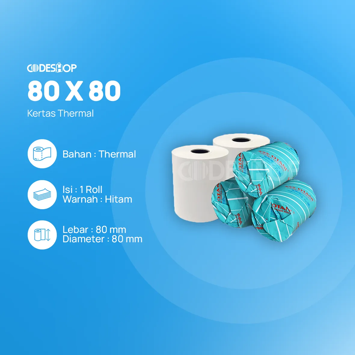 Spefikasi Kertas Thermal OTANI 80×80 Hitam Core17 :