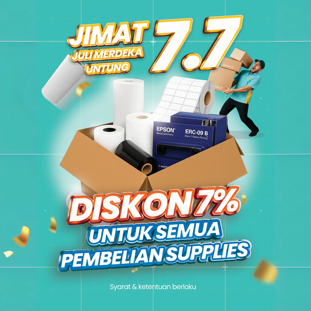 Promo ini berlaku untuk berbagai jenis perlengkapan kebutuhan bisnis seperti kertas thermal, label barcode, ribbon printer, hingga label printing. Cocok untuk pelaku usaha ritel, toko online, logistik, hingga UMKM yang ingin belanja hemat namun tetap mendapatkan kualitas terbaik.